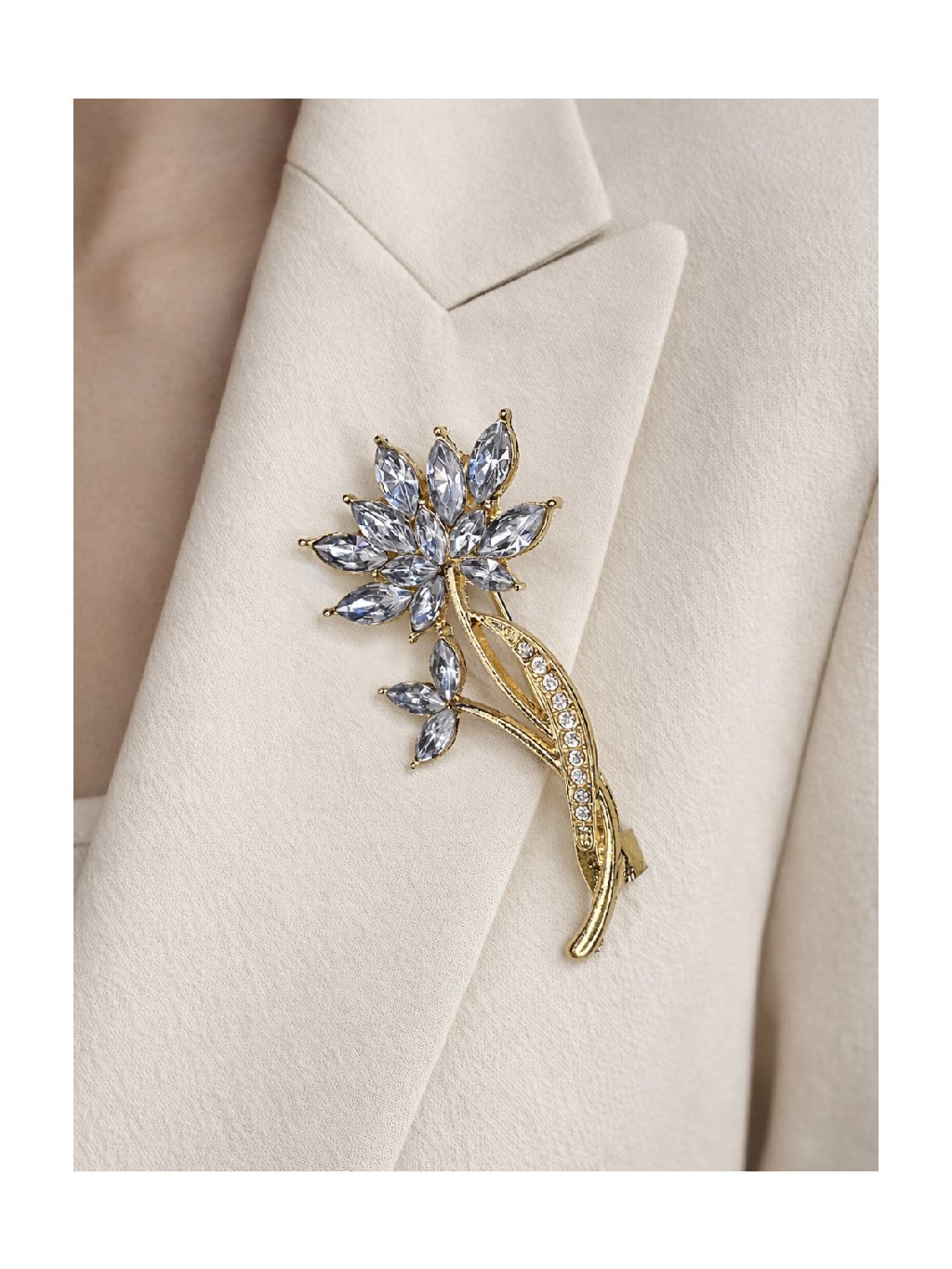 Brož ve tvaru květiny v jemném zlaté provedení oživí jakýkoli outfit.