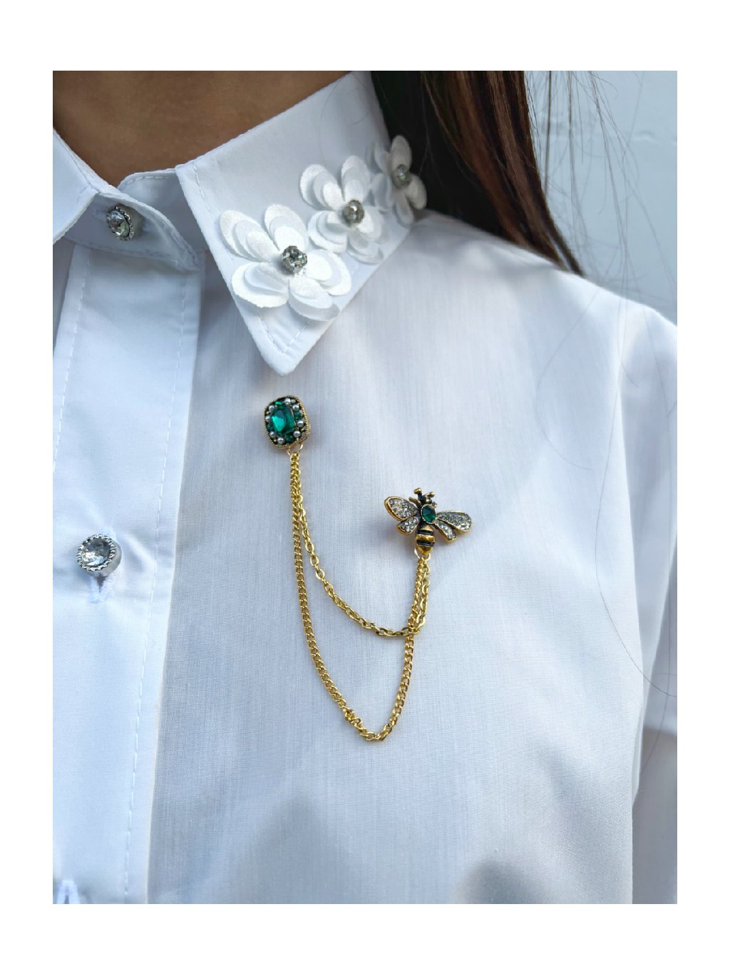 Elegantní brož ve tvaru včelky, zdobená jemnými kamínky a stylovým řetízkem, dodá šmrnc každému saku, svetru nebo šátku. Ideální pro milovnice originálních detailů. Včelka, která bodne jedině svým šarmem!