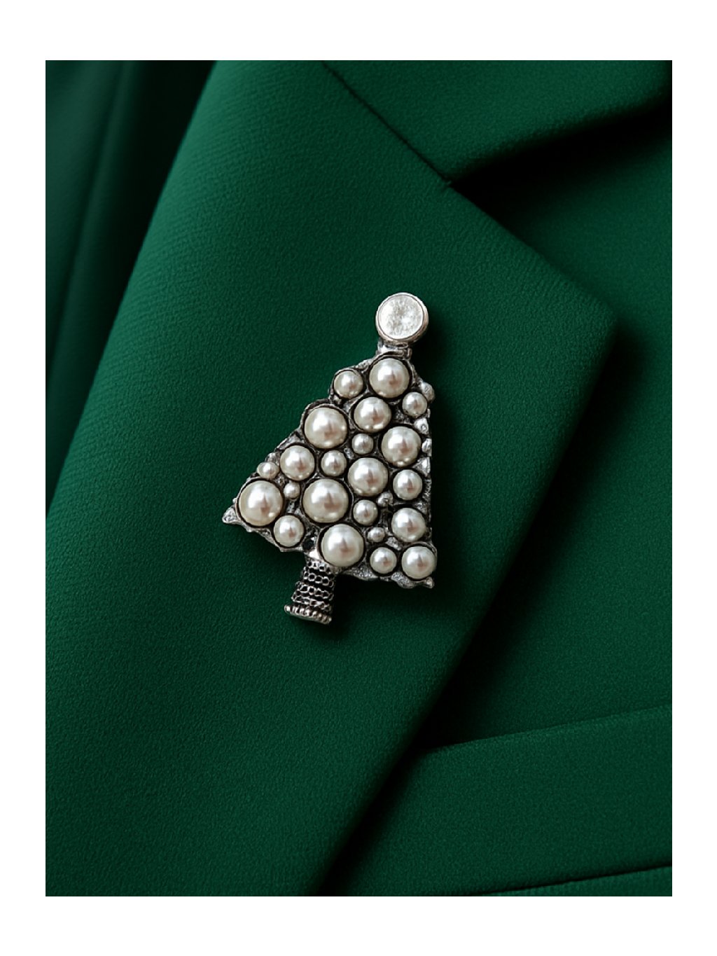 Elegantní brož ve tvaru vánočního stromečku v lesklém stříbrném provedení. Ozdobená jemnými bílými perličkami, které dodávají něžný a sváteční vzhled. Perfektně doladí kabát, sako i zimní šaty a dodá outfitu krásný vánoční akcent.