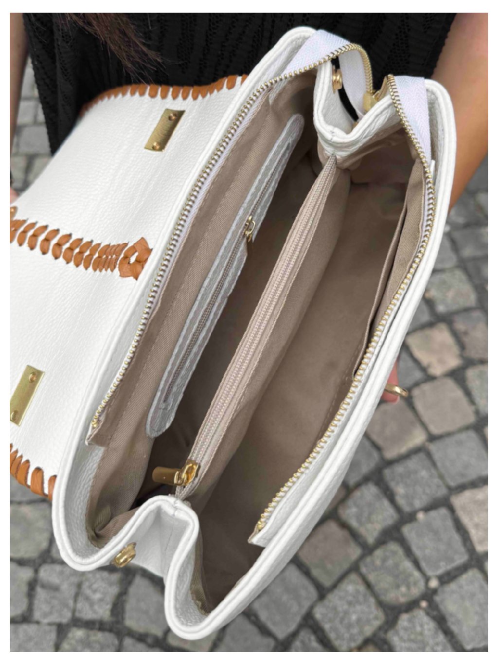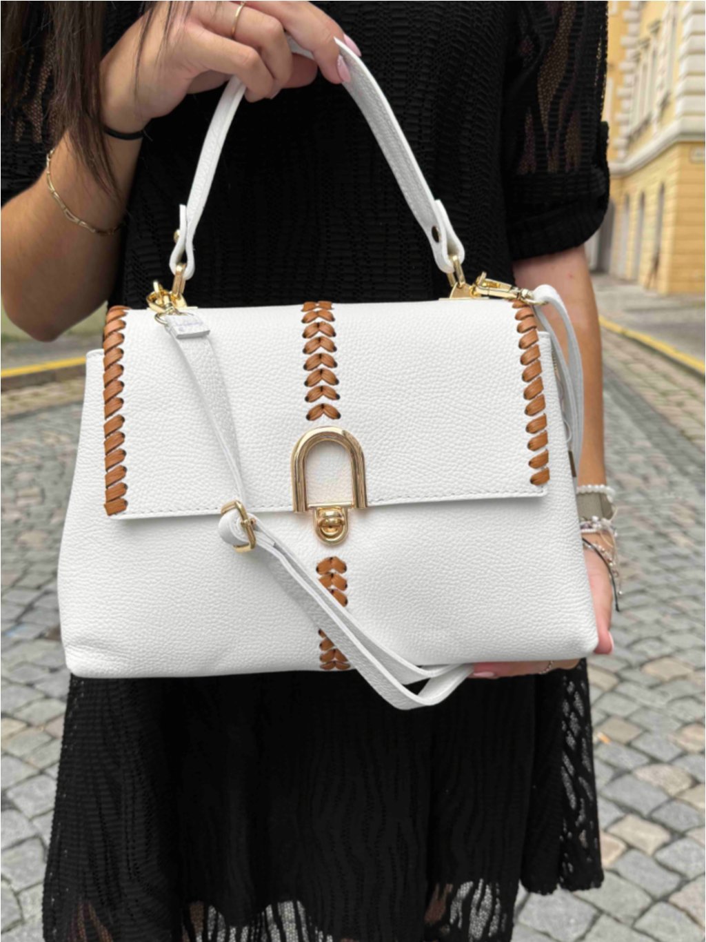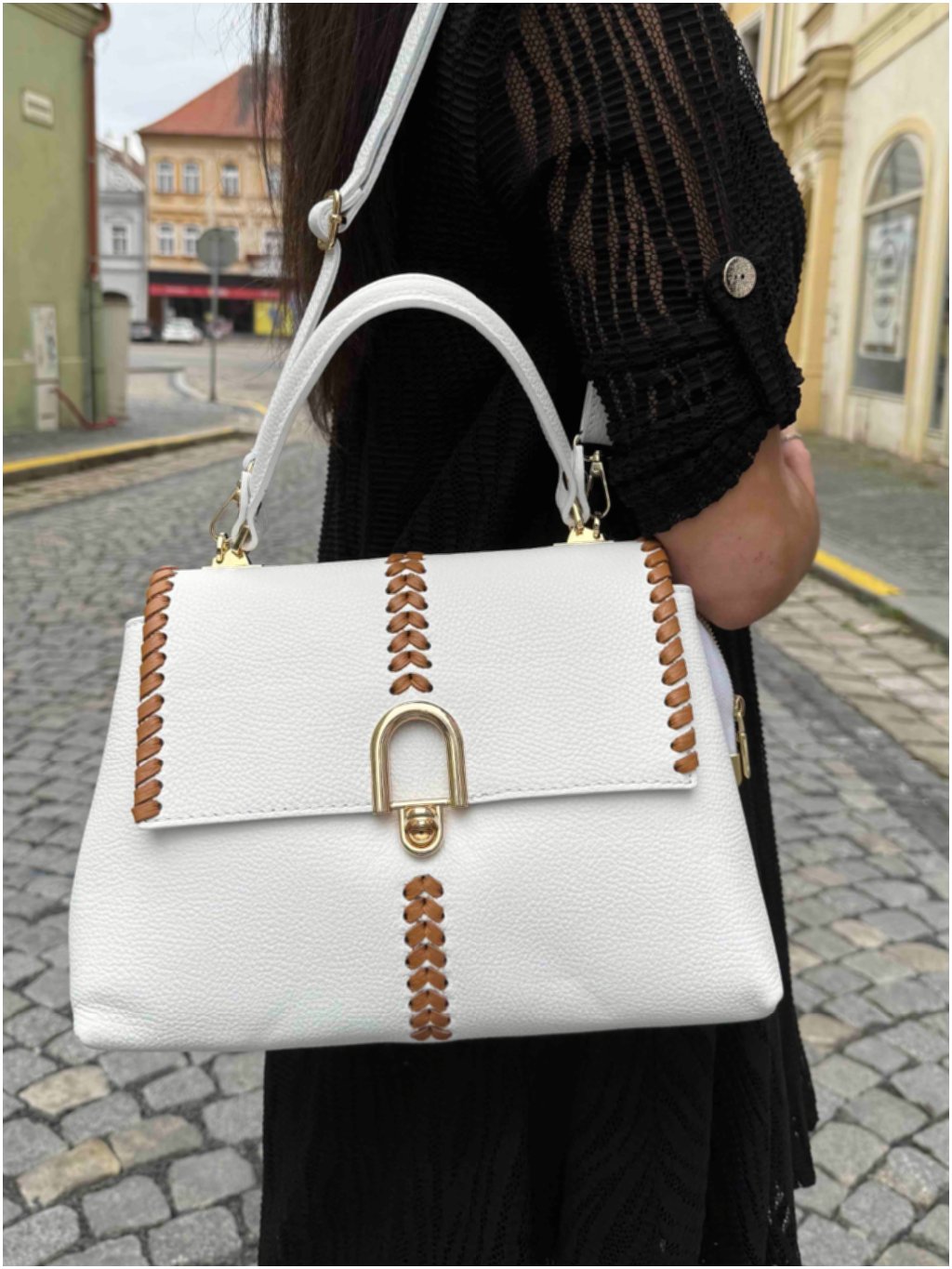 Kožená kabelka BAUR bílá/hnědá se zlatými detaily