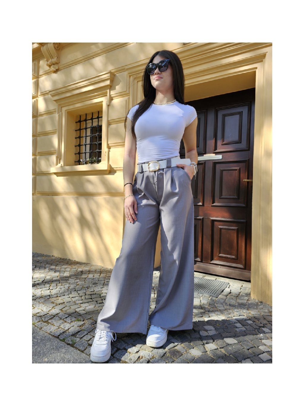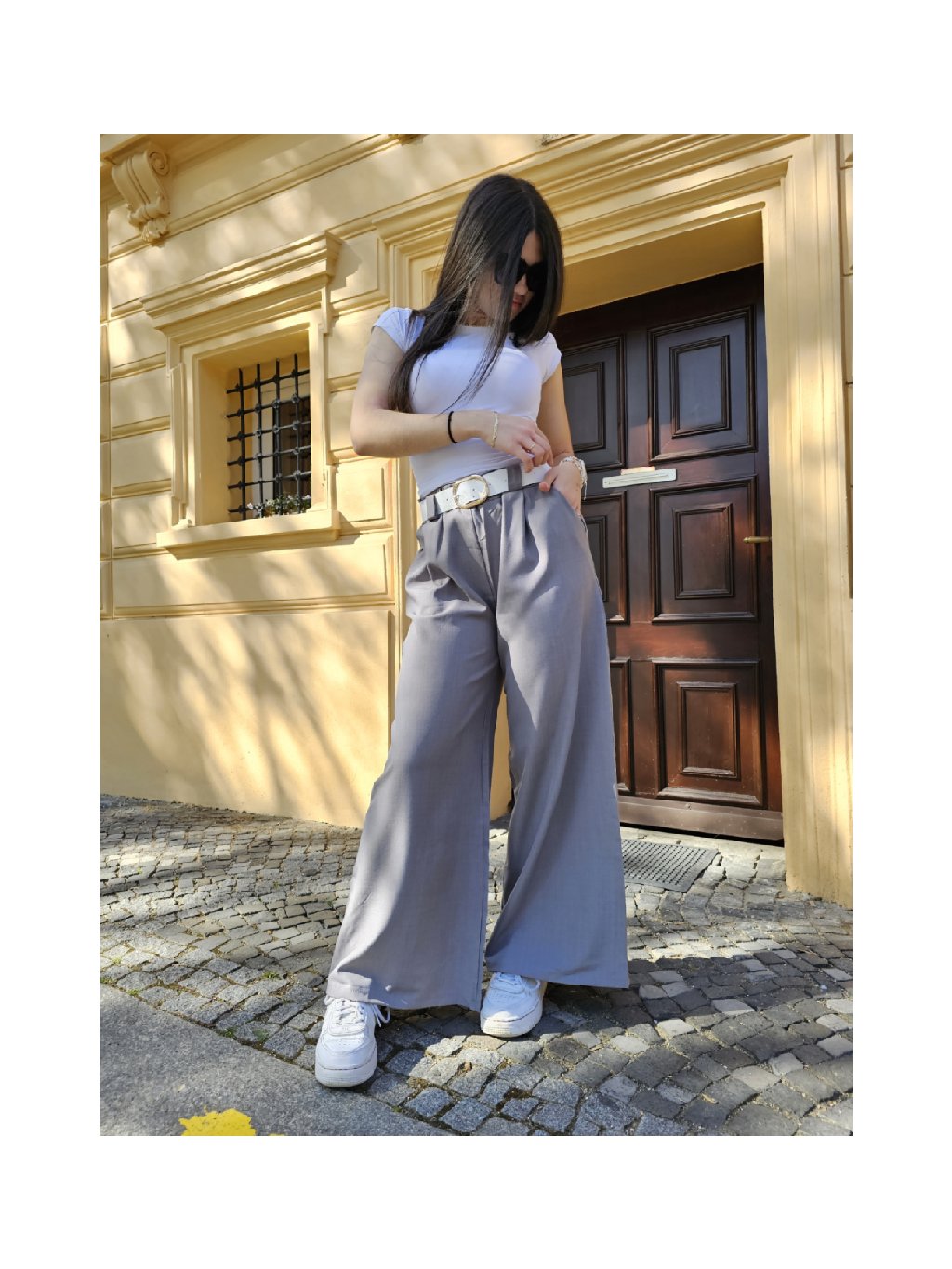 Dámské šedé kalhoty MONEA s bílým páskem3
