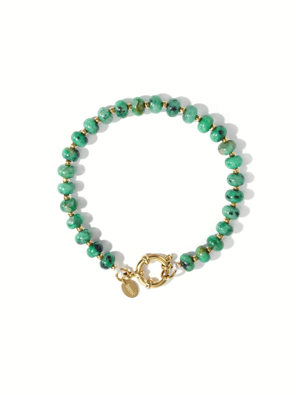 Náramek RONSI z kamenných korálků a hematitu se zlacenou chirurgickou ocelí - smaragdově zelený