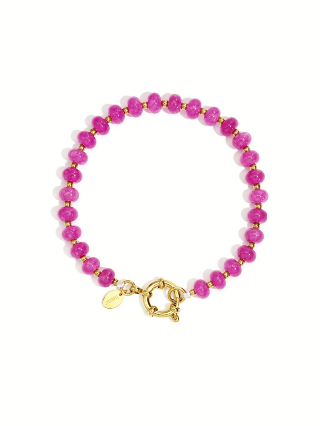 Náramek RONSI z kamenných korálků a hematitu se zlacenou chirurgickou ocelí - tmavě růžový