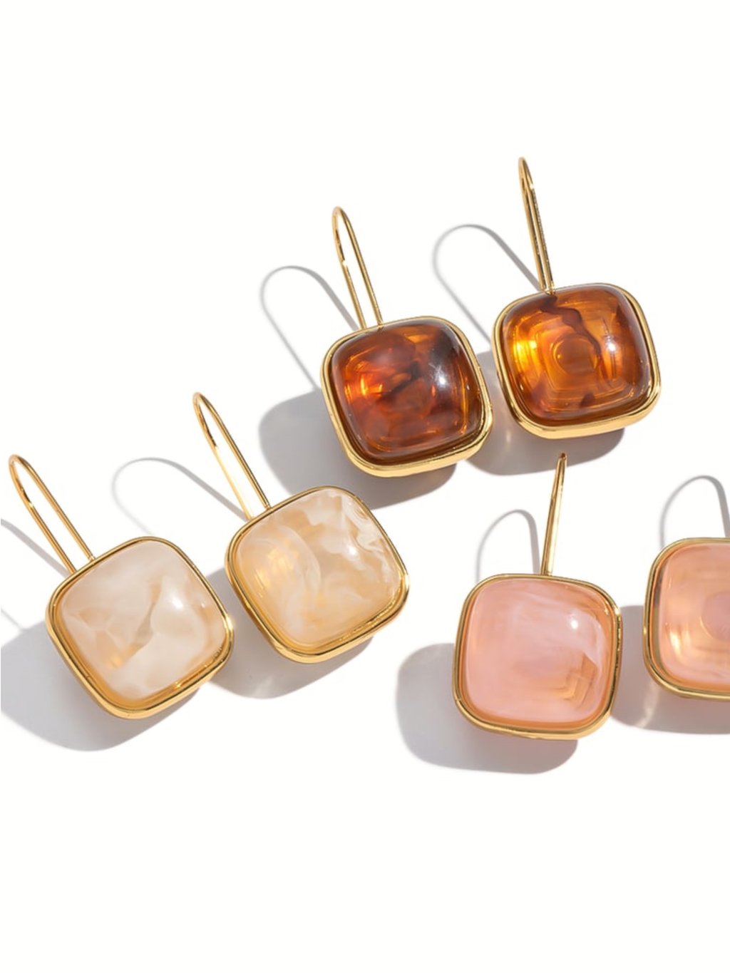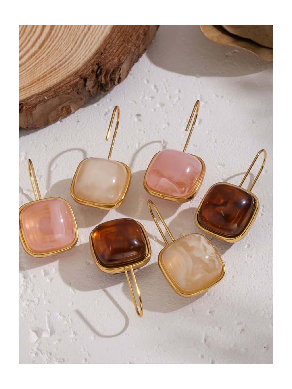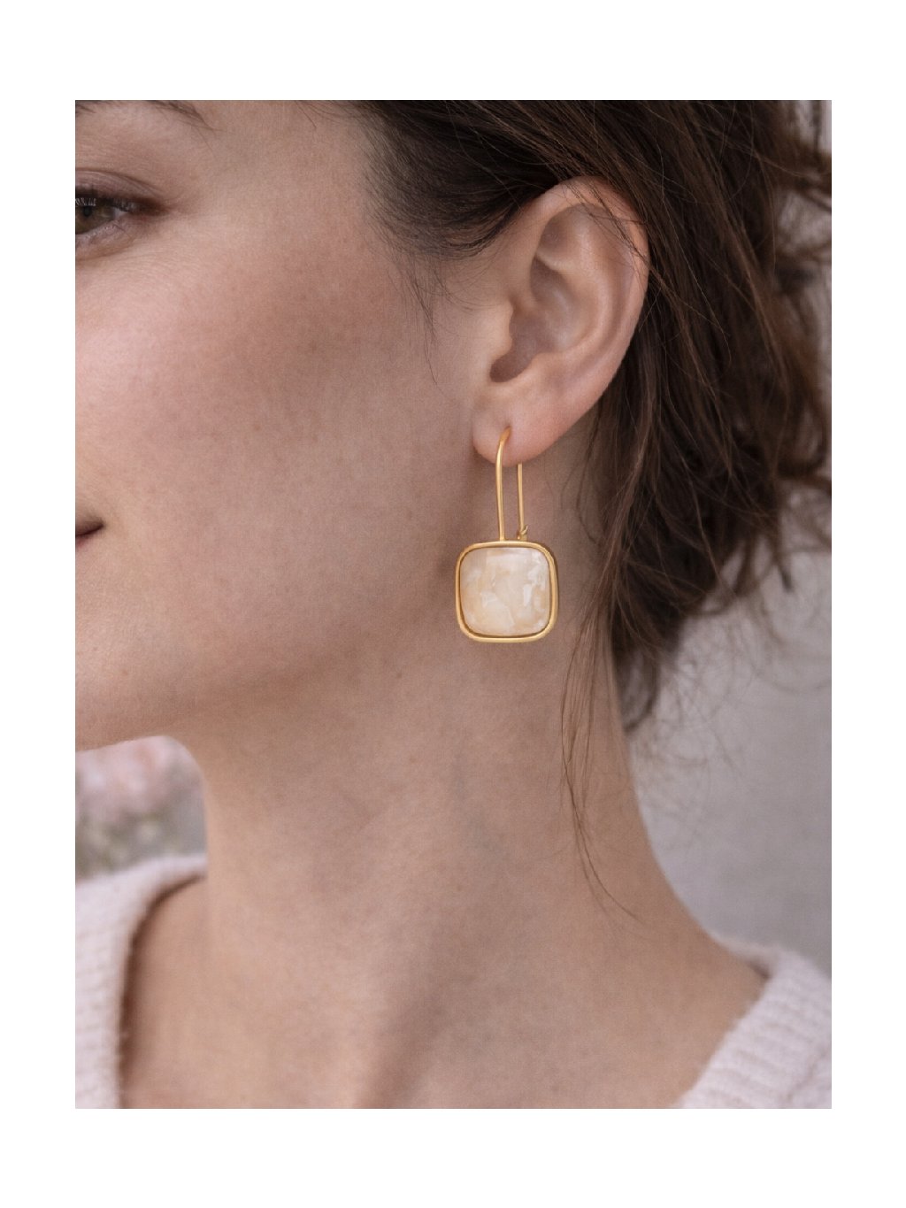 Elegantní náušnice se čtvercovým přívěskem z jemné pryskyřice v perleťovém odstínu krásně odrážejí světlo a působí velmi čistě a nadčasově. Zlatý rám a háček z nerezové oceli s 18K zlacením dodávají šperku luxusní vzhled, který se hodí jak ke každodenním outfitům, tak i ke slavnostnějším příležitostem. Lehké, pohodlné a přesto nepřehlédnutelné.