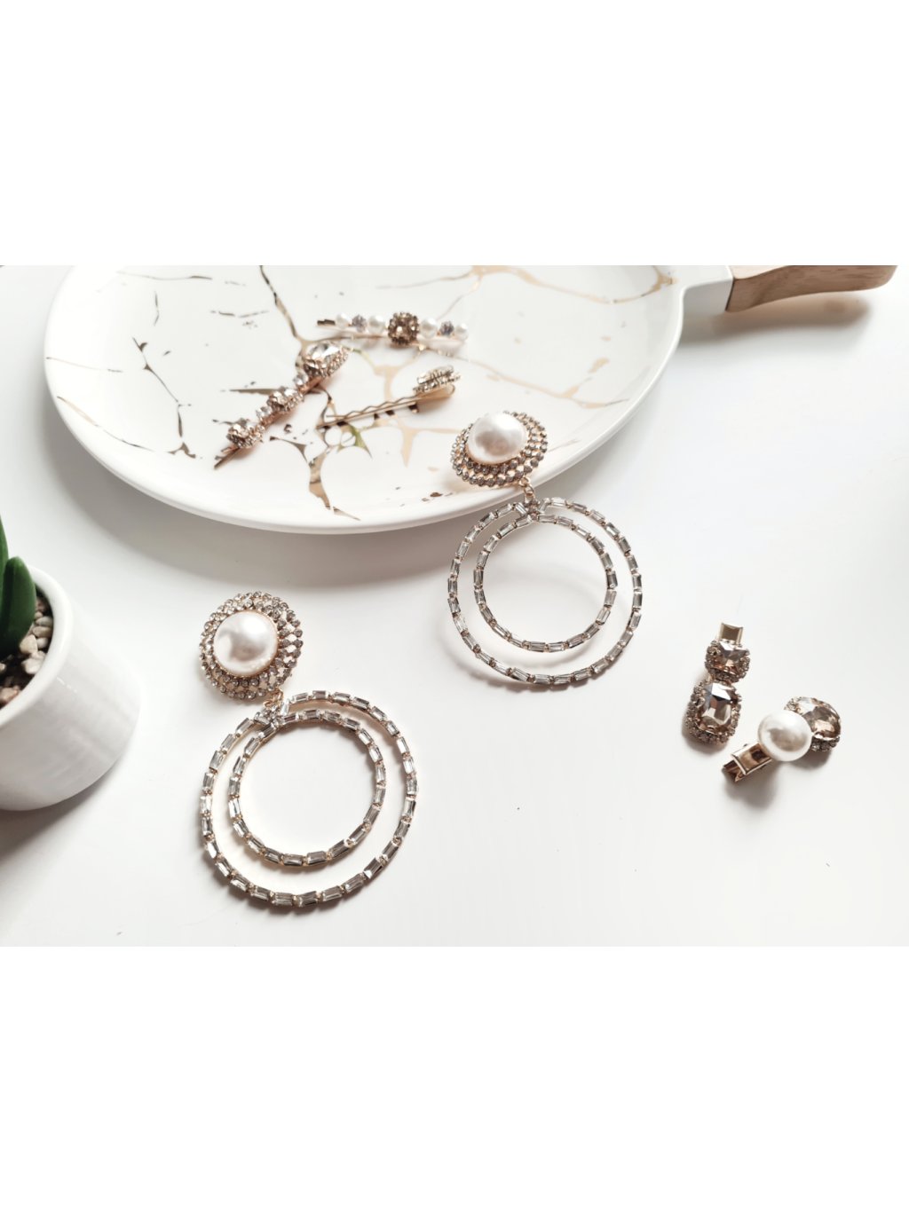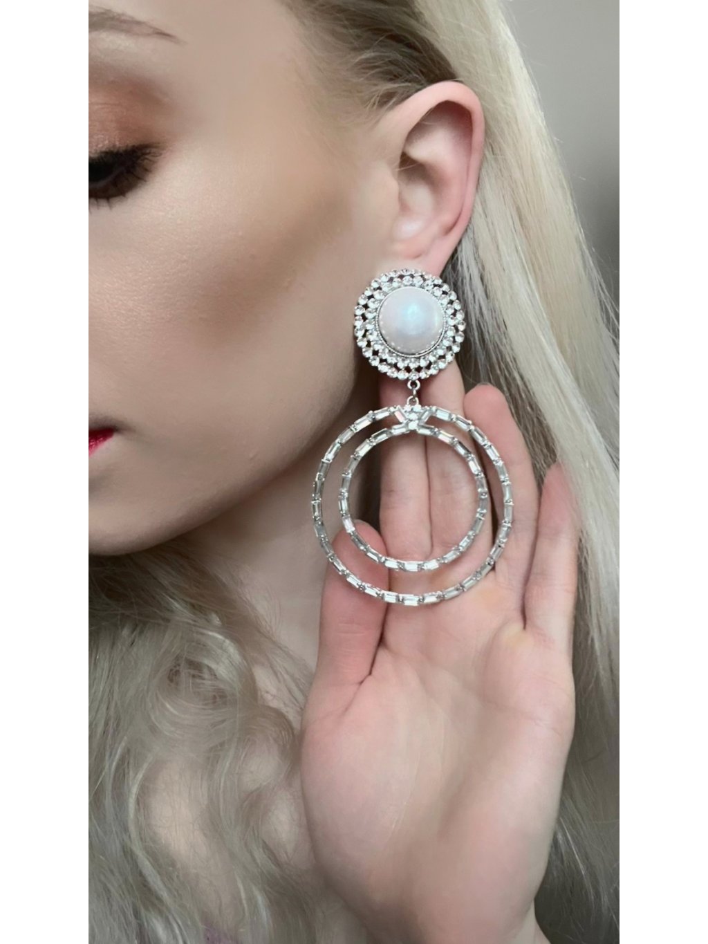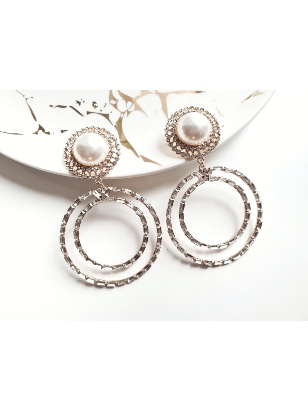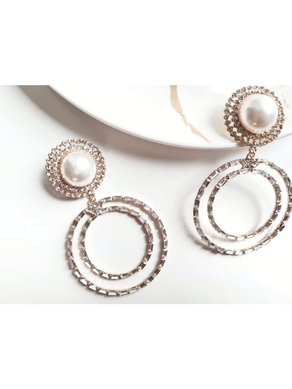 Velké kruhové náušnice s velkou perlou Sparkle - gold