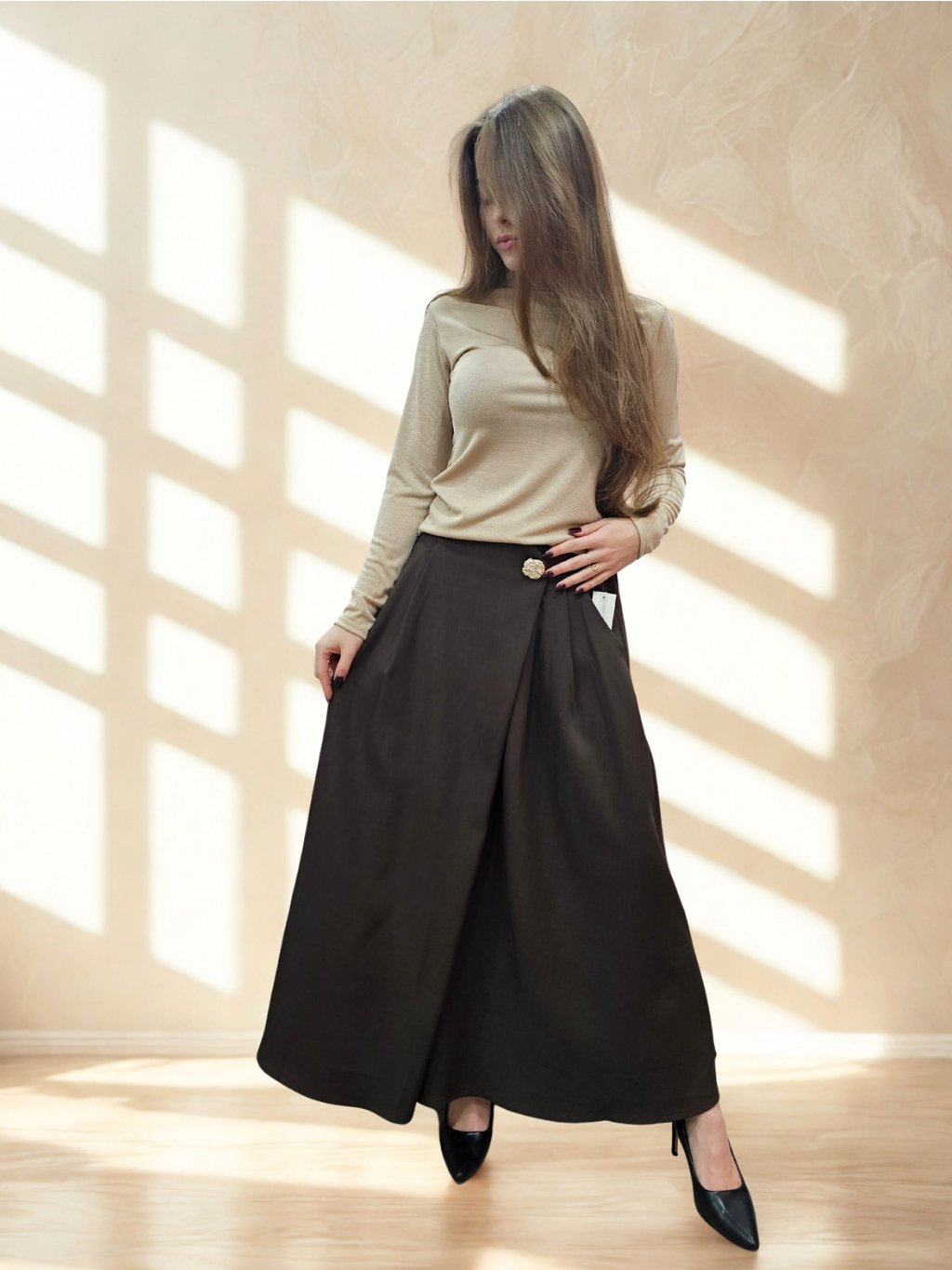 Elegantní a nadčasová dlouhá áčková sukně MARIZA je dokonalým kouskem pro váš šatník. Díky lehce splývavému střihu krásně sedí na postavě a vytváří ženskou siluetu. Lze ji snadno zkombinovat s různými outfity – ať už ji doplníte elegantní halenkou, nebo ležérním svetrem.