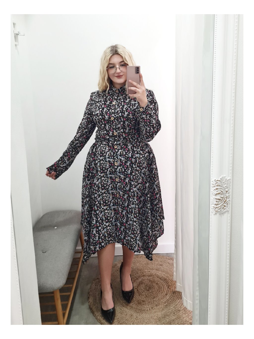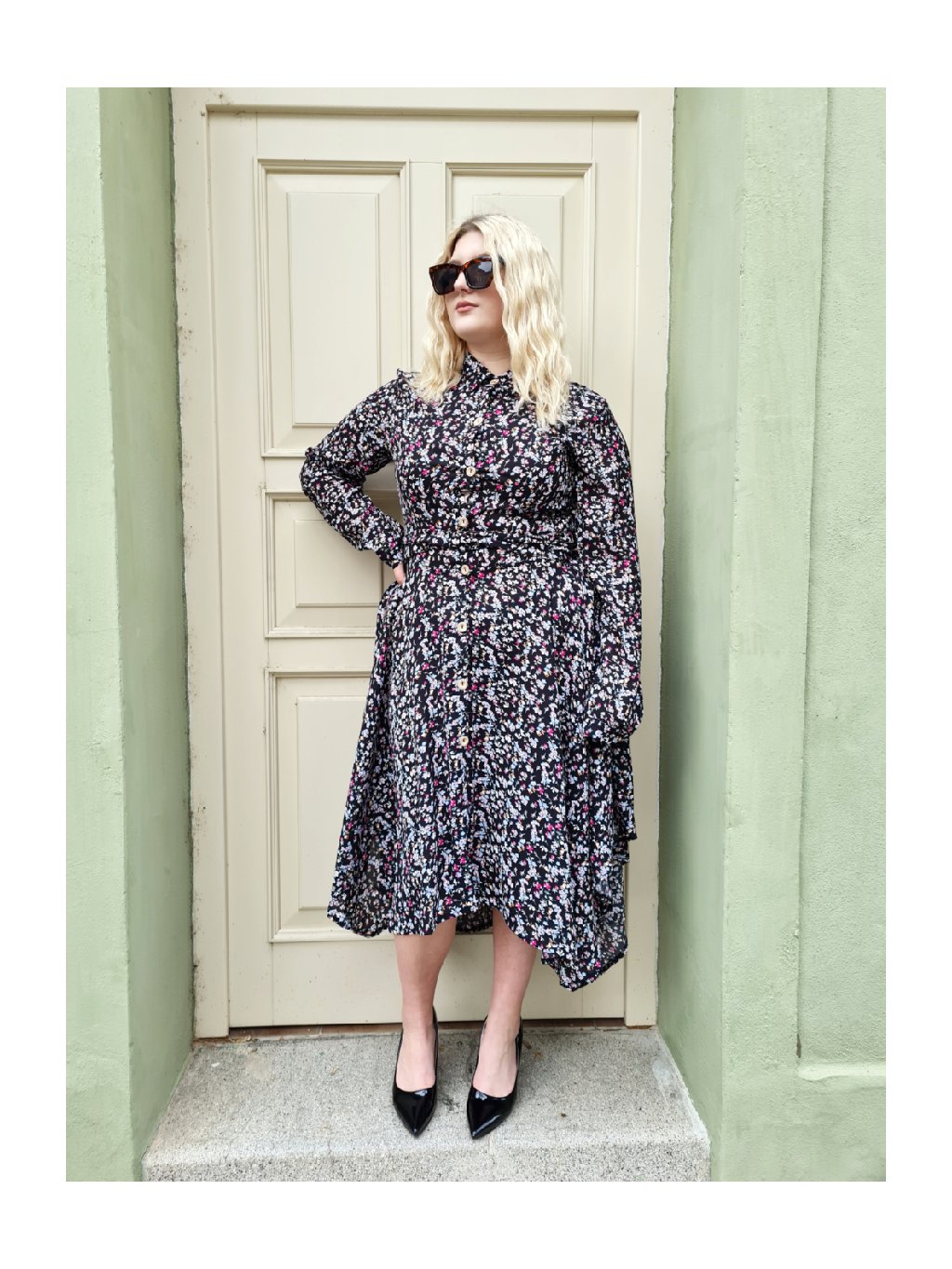 Dlouhé květované šaty BELD s knoflíky a páskem