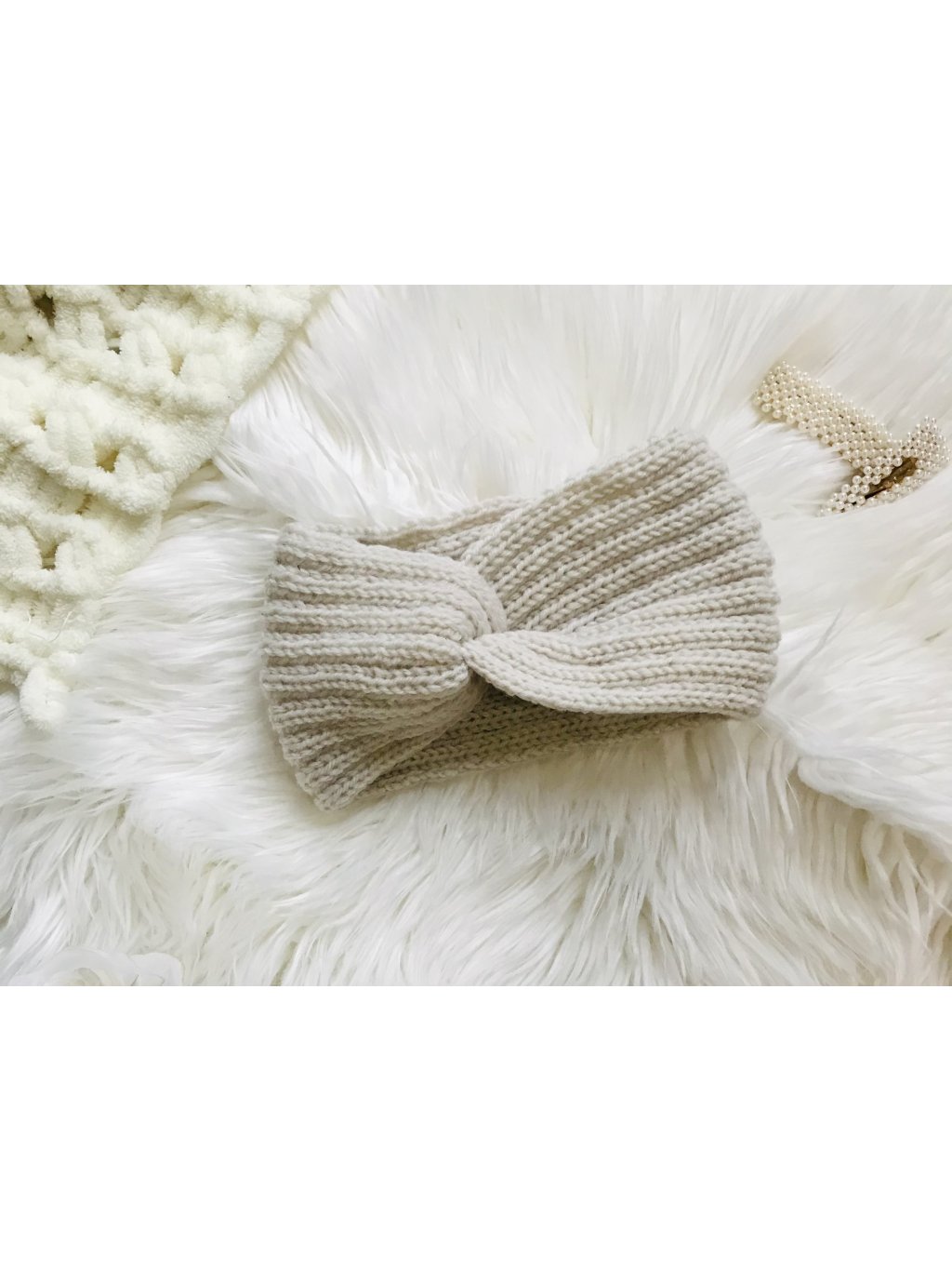 Pletená čelenka Elegance - béžová