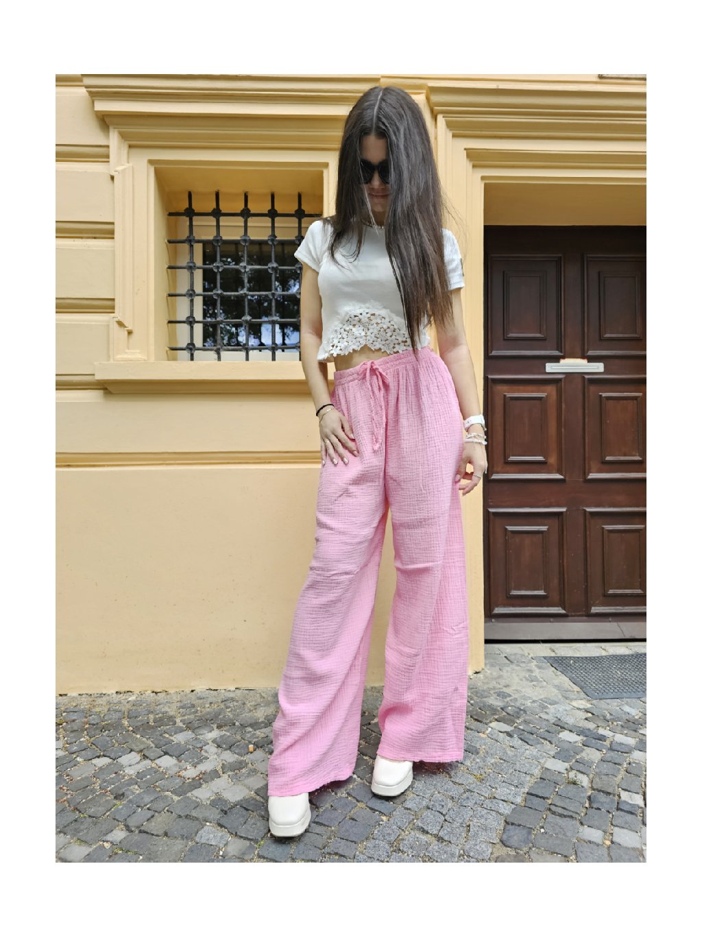 Tmavě růžové elegantní kalhoty FIAMMA s páskem