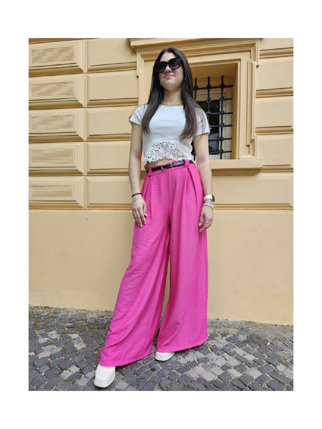 Vzdušné kalhoty TAILLO fuchsiové s páskem