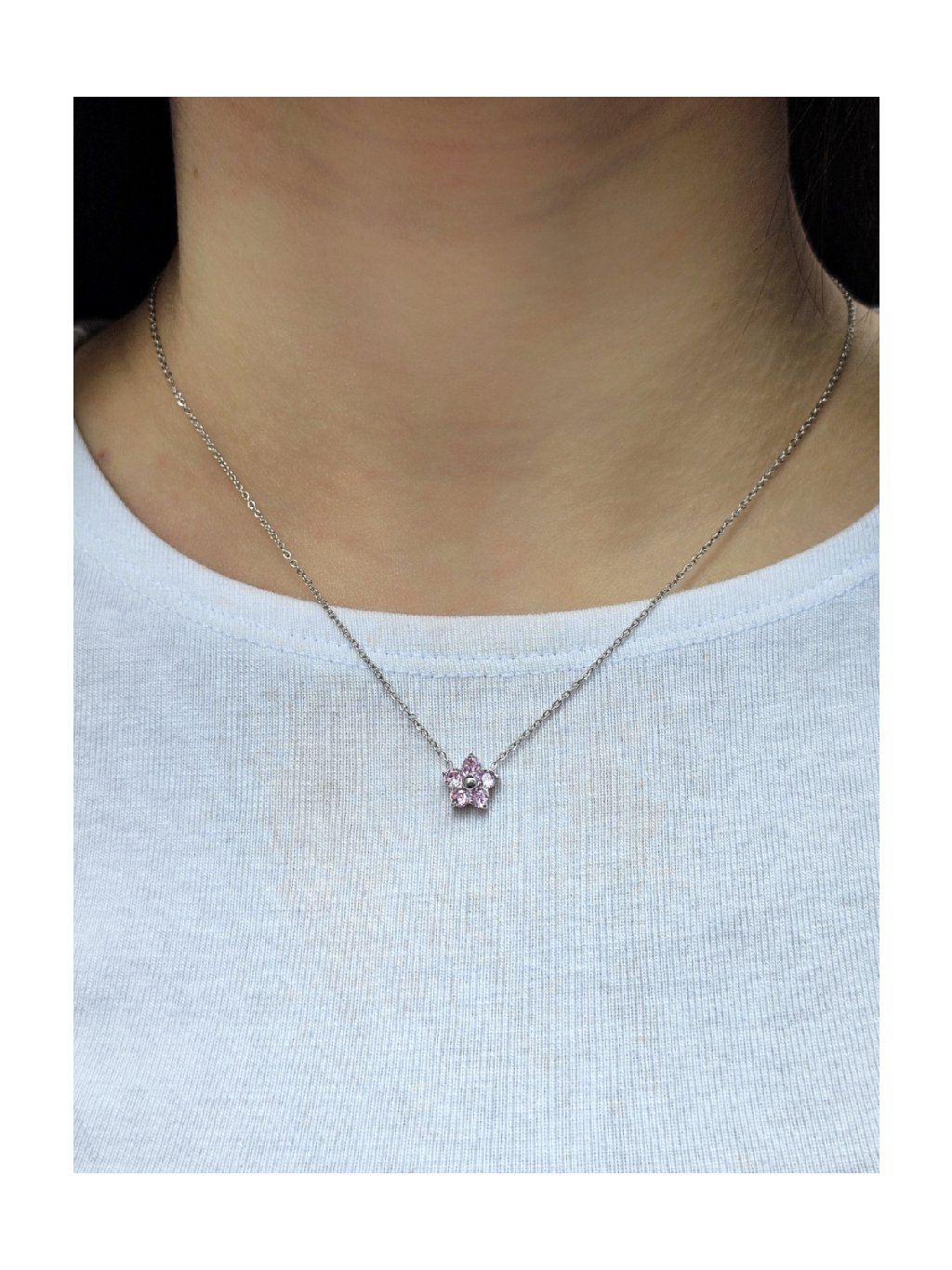 Náhrdelník z nerezové oceli KVĚT s broušenými kameny