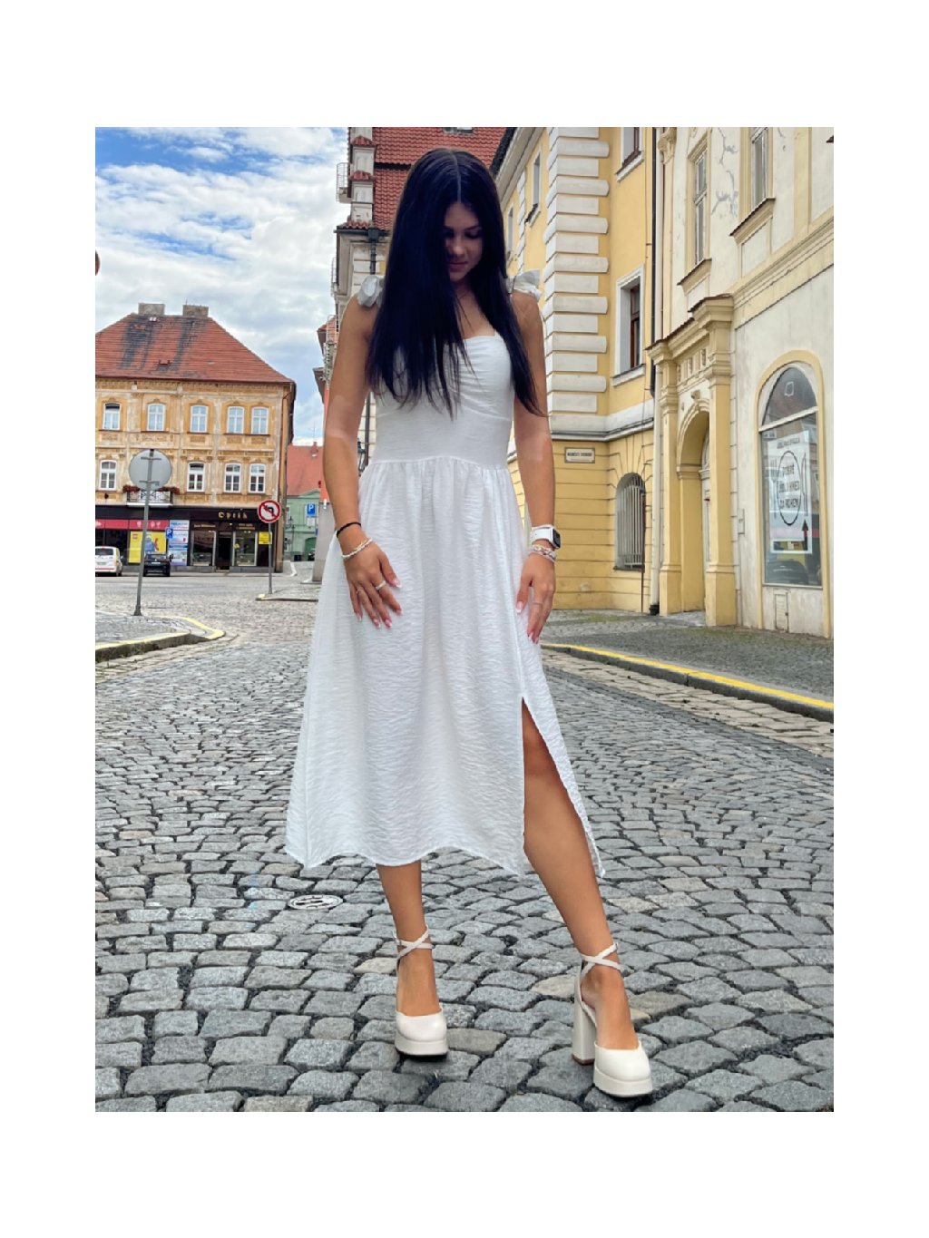 Šaty FRANCLIA zaujmou nejen svou bílou barvou, ale i jemným řasením v oblasti prsou, které krásně tvaruje dekolt. Perfektní volba na letní oslavy, svatby i večerní procházky.