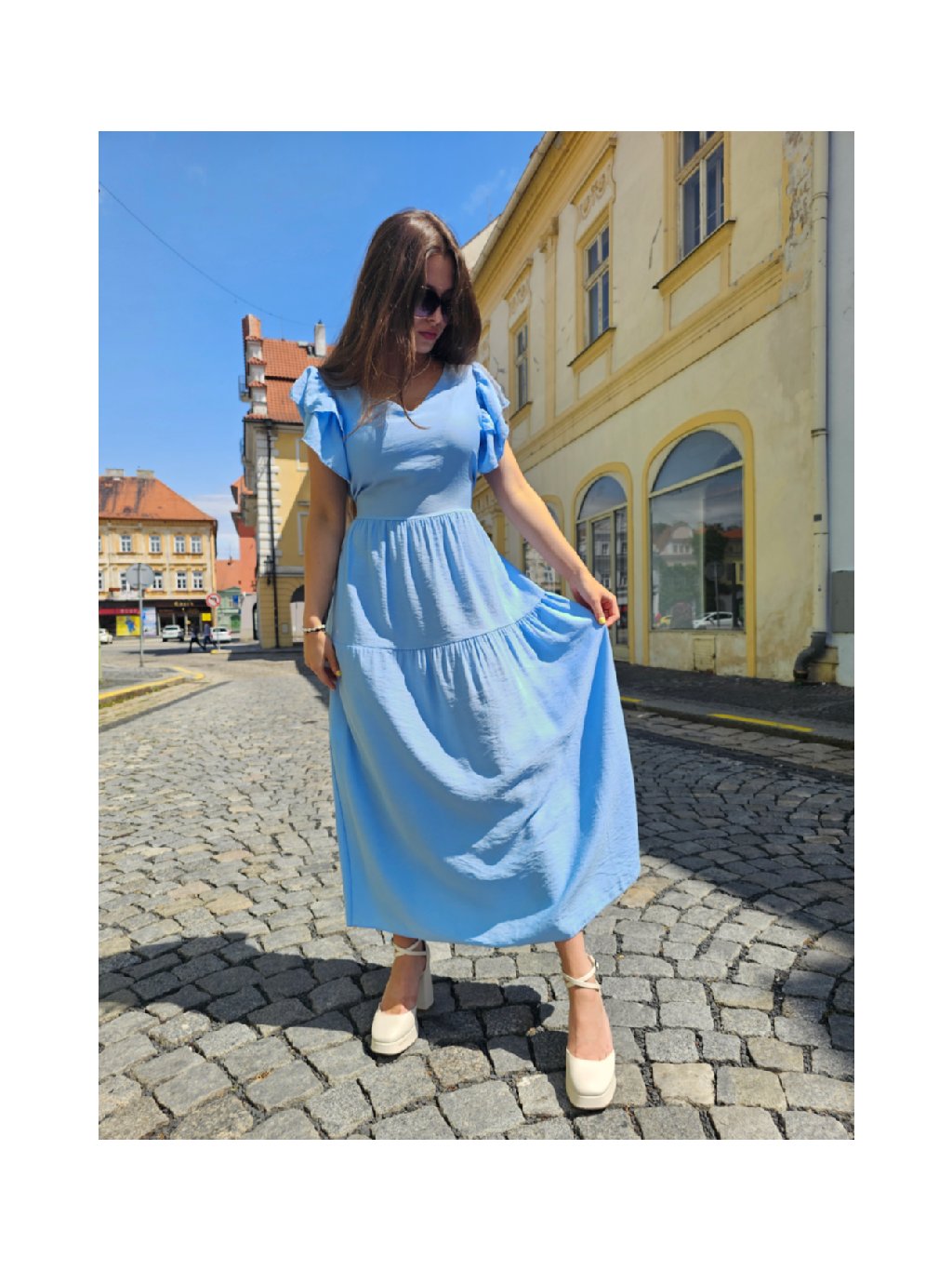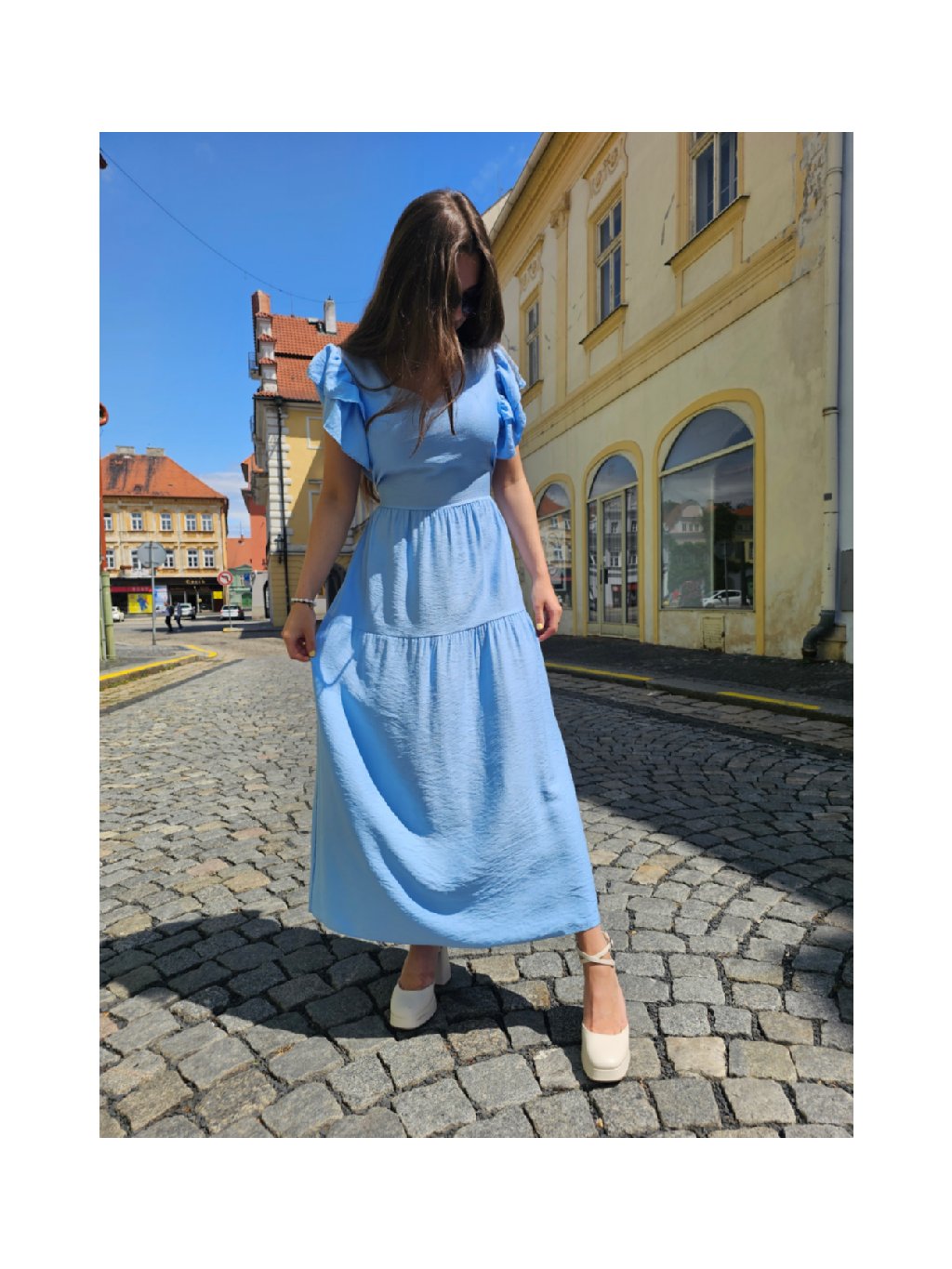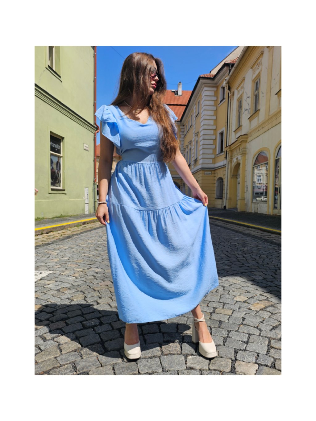 Dlouhé šaty LETOA se zavazování vzadu v pase světle modré