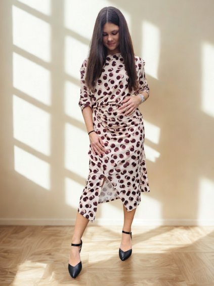Světle béžové šaty ANIE s páskem květované