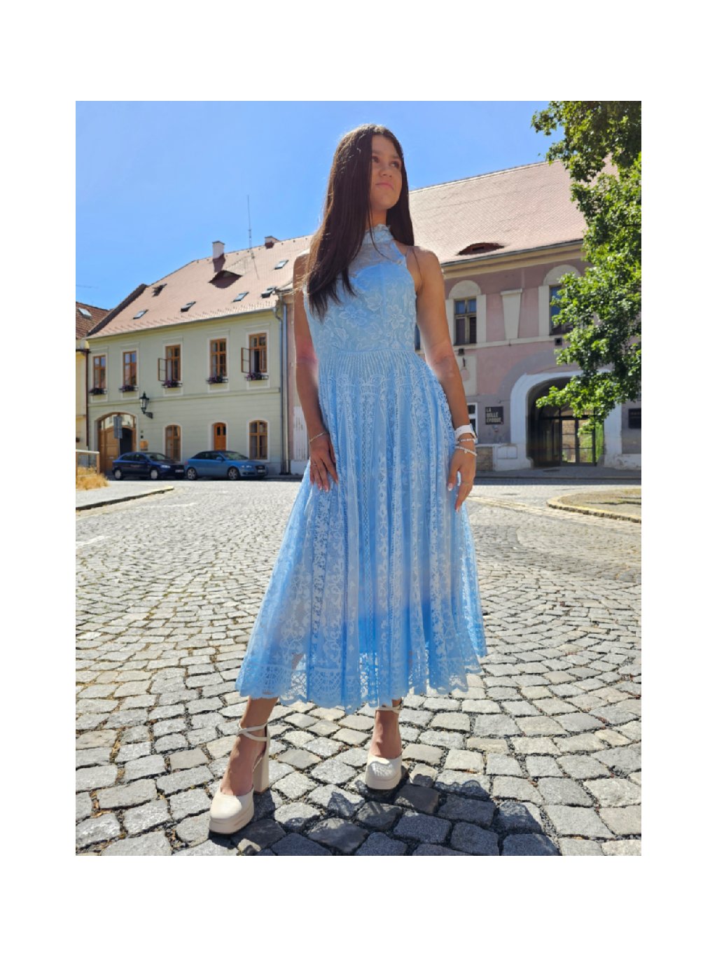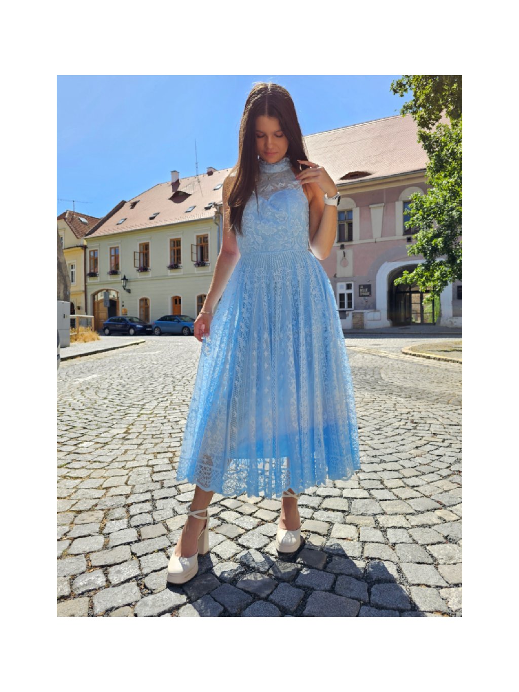 Světle modré dámské krajkové šaty VERONICA