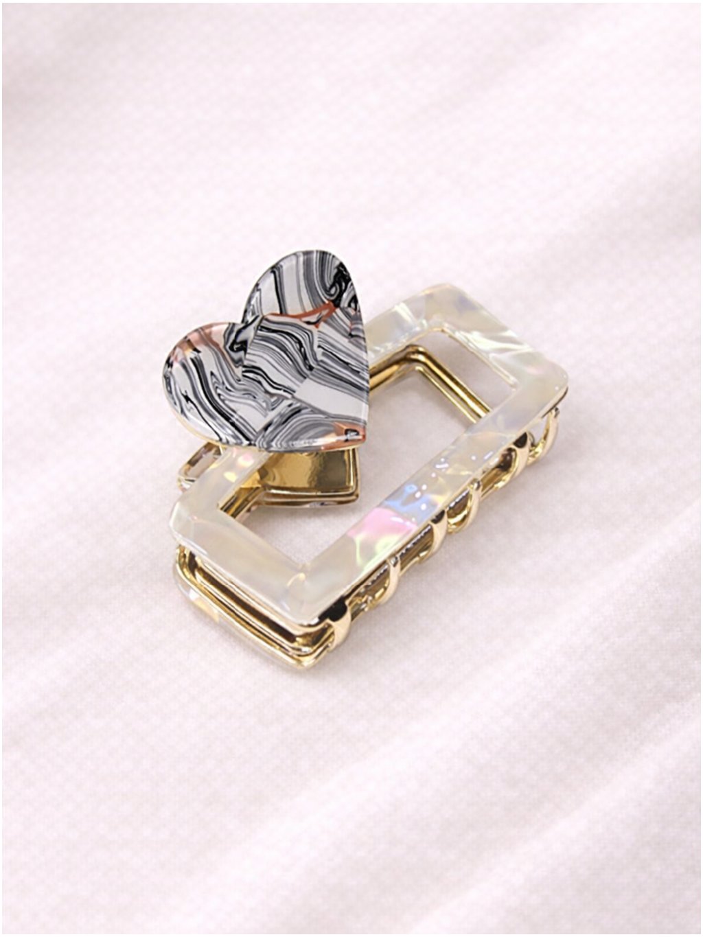Skřipec do vlasů LOVE SQUARE – perleťový s mramorovým srdcem