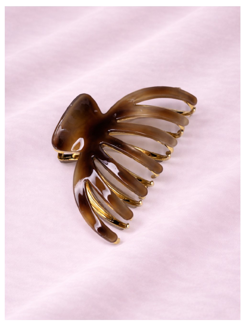 Skřipec do vlasů s kovovými zuby – hnědý (želvovinový efekt)