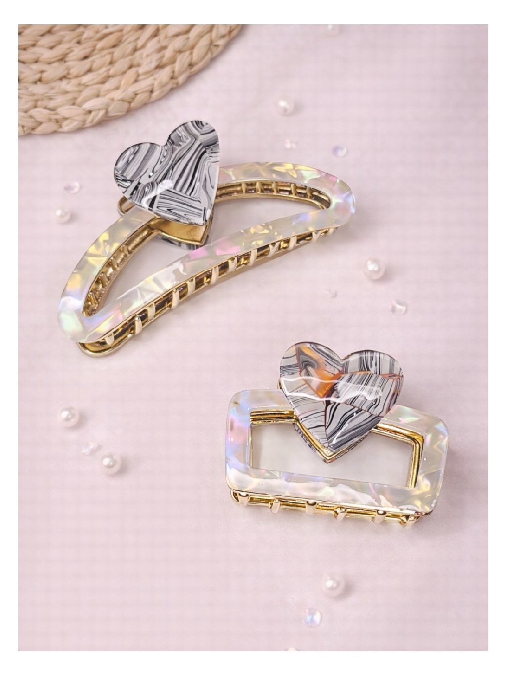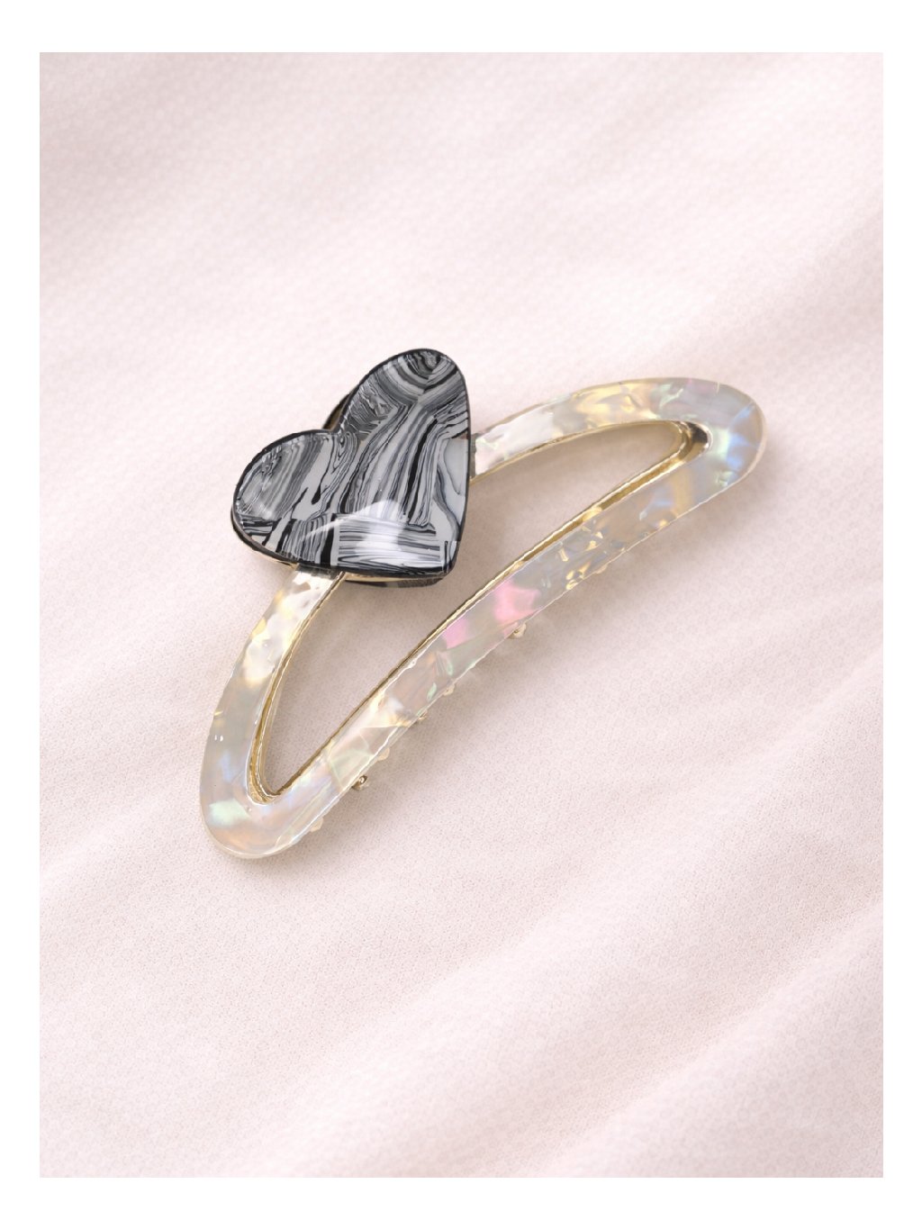 Skřipec do vlasů srdce AMORA – perleťový / černo-bílé srdce