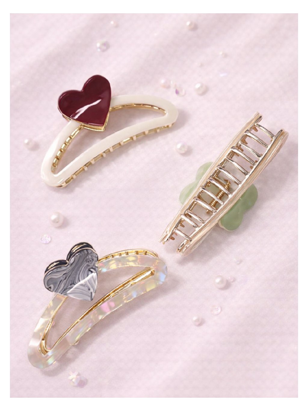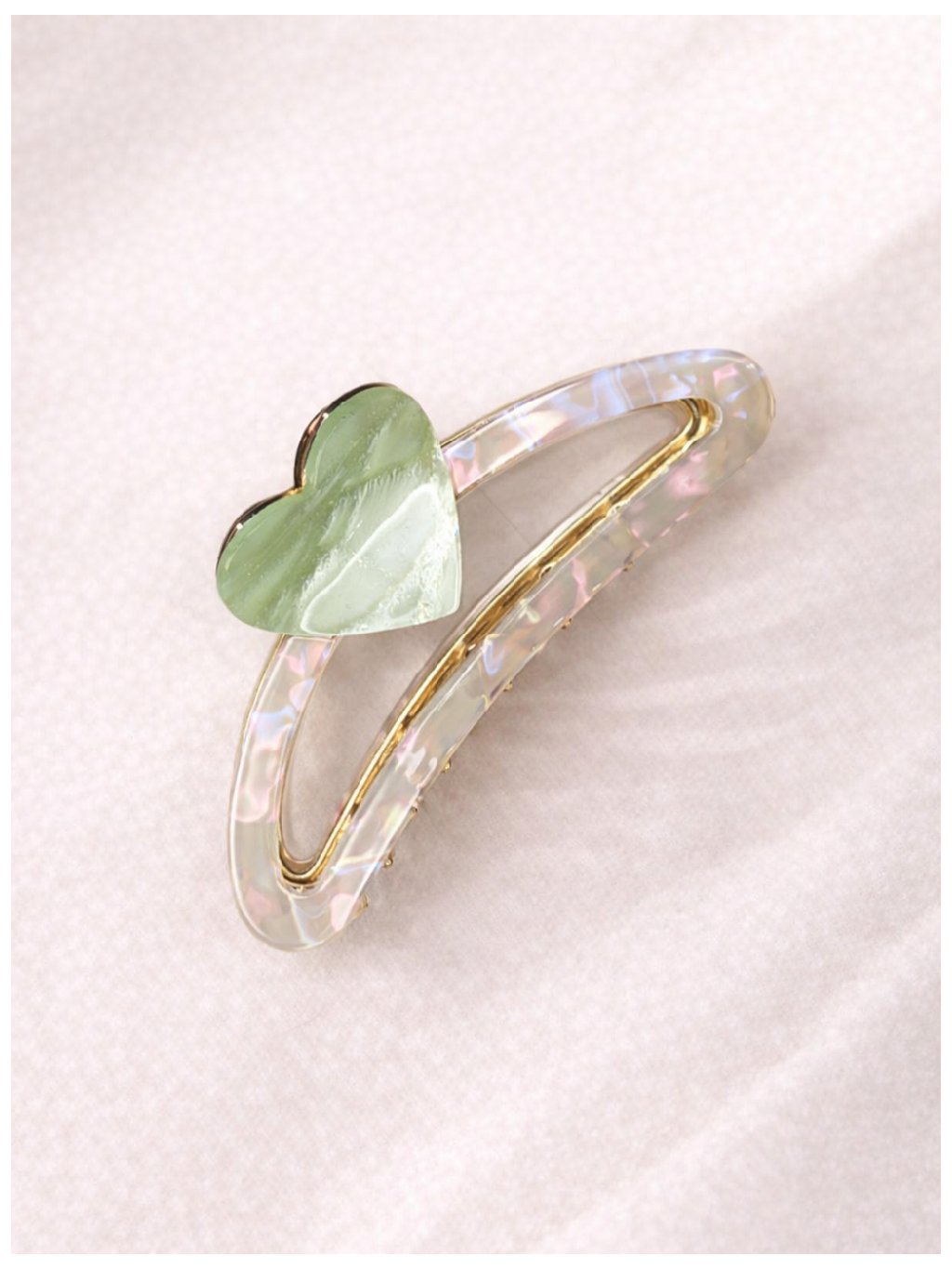 Skřipec do vlasů srdce AMORA – perleťový / mentolové srdce