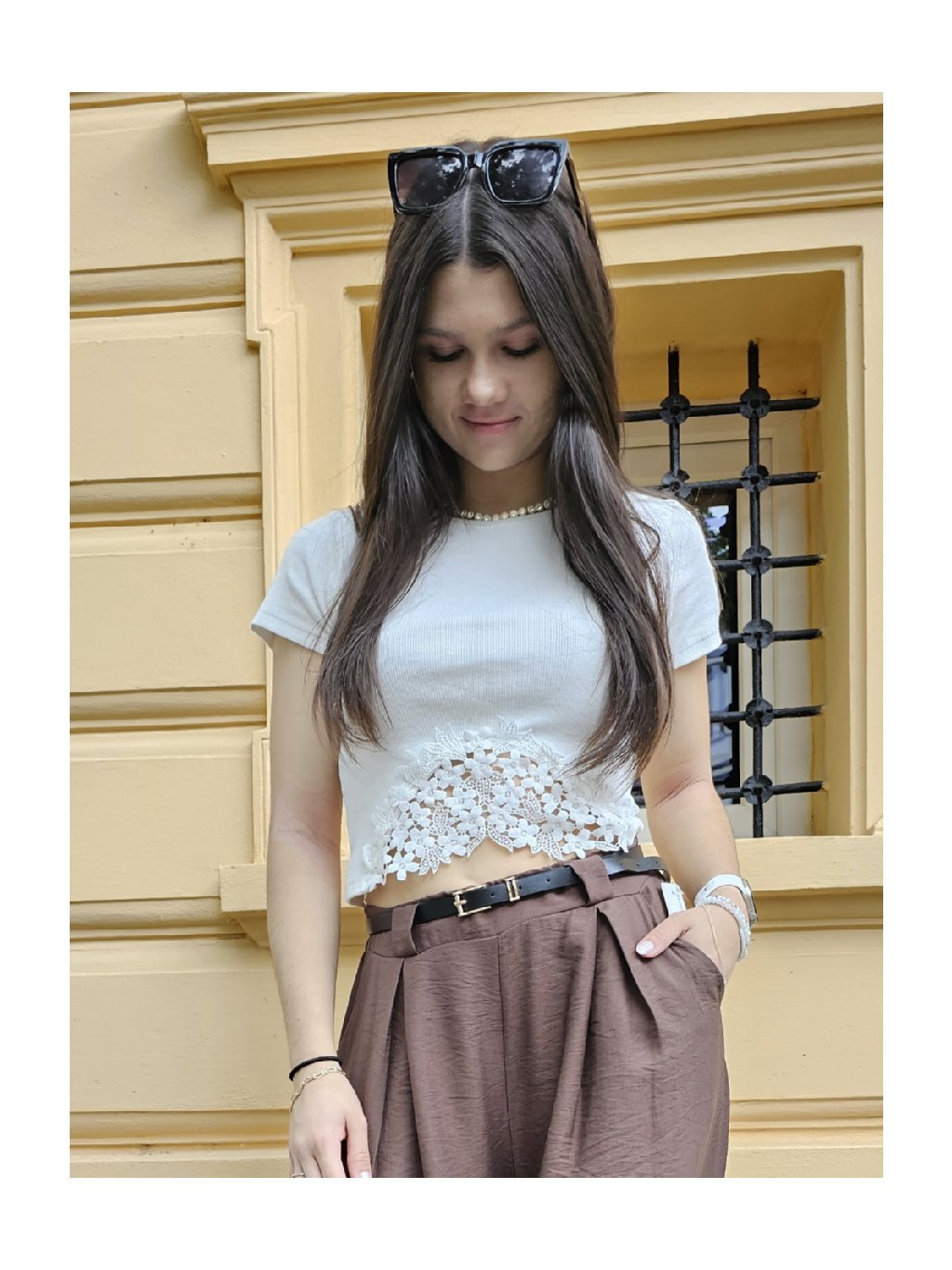 Bílá elegantní halenka MOLLY zdobená květinami a kamínky