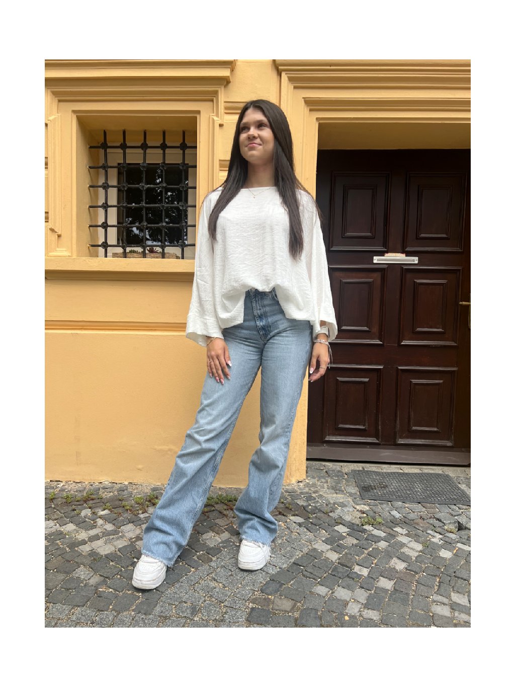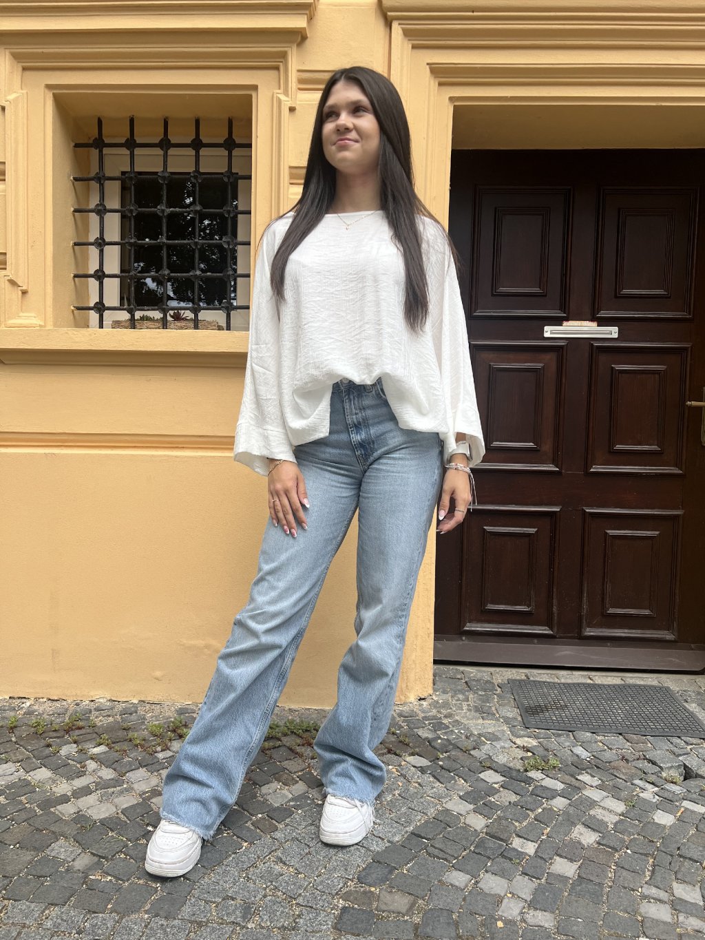 Bílá vzdušná halenka MYOLLA je jemný a ženský kousek, který zaujme svým romantickým a vzdušným vzhledem. Ať už vyrazíš do města, na festival nebo k moři, LUISA tě rozzáří!