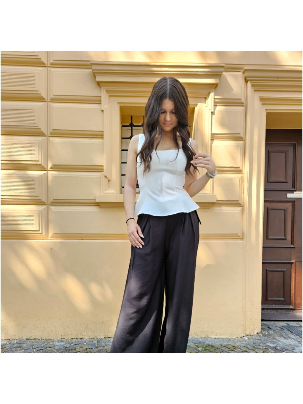 Bílý top ELL je jako dotek ranního světla - lehounký, čistý a přirozeně elegantní. Díky volnému střihu s rozšířeným spodním lemem vytváří ženskou siluetu, která působí něžně, ale zároveň sebevědomě. Skvěle ladí jak se sukní, tak i s volnými kalhotami!