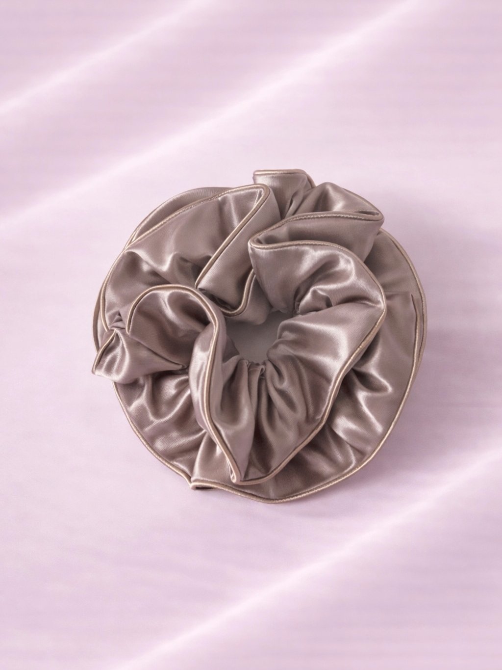 Saténová gumička do vlasů SCRUNCHIE – taupe / šedobéžová